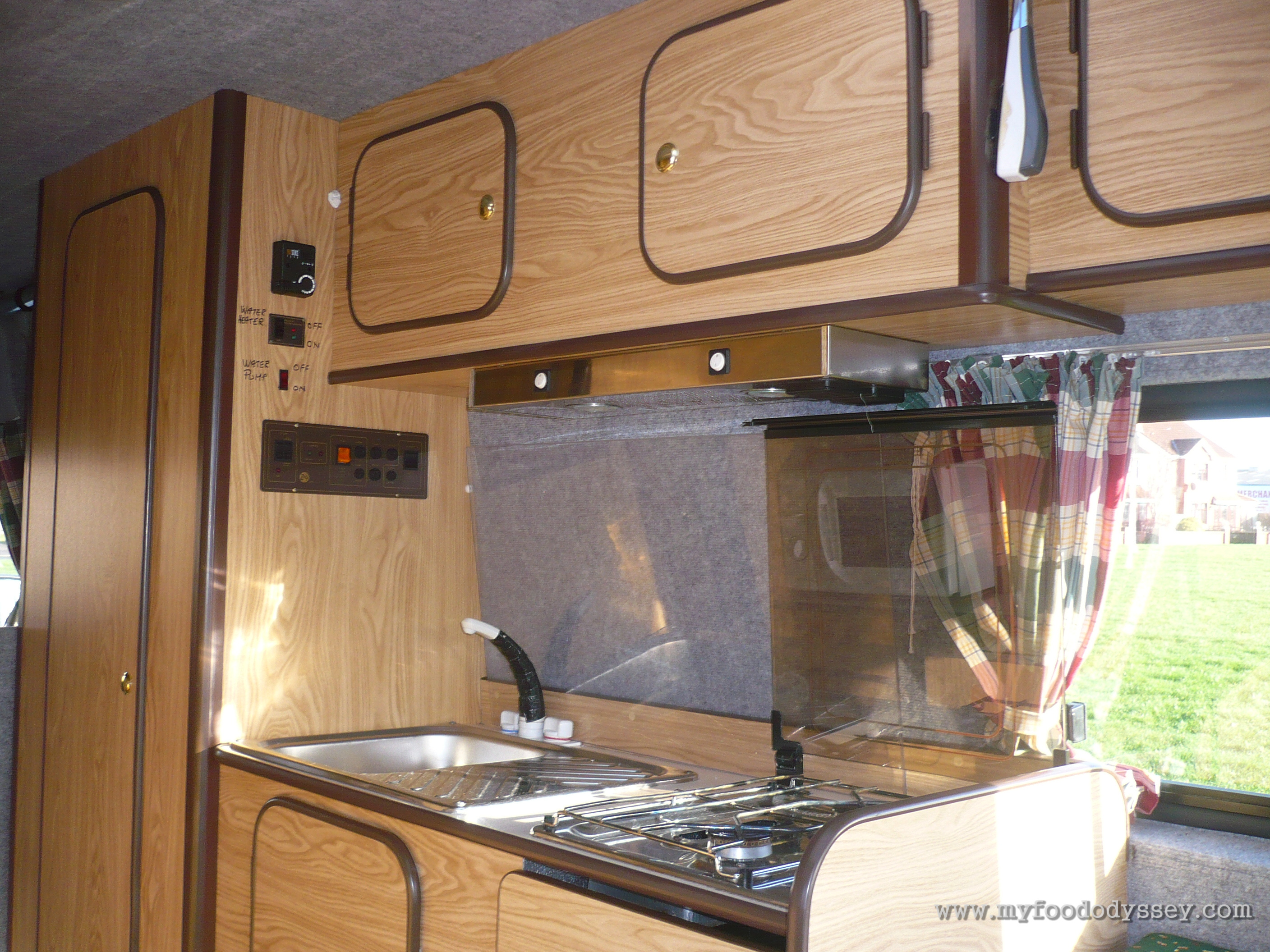 The sink & hob Quite a sizeable sink for a camper. The hob has two rings plus a long ring to the left that is heated by the grill below. Useful for simmering or keeping food warm.