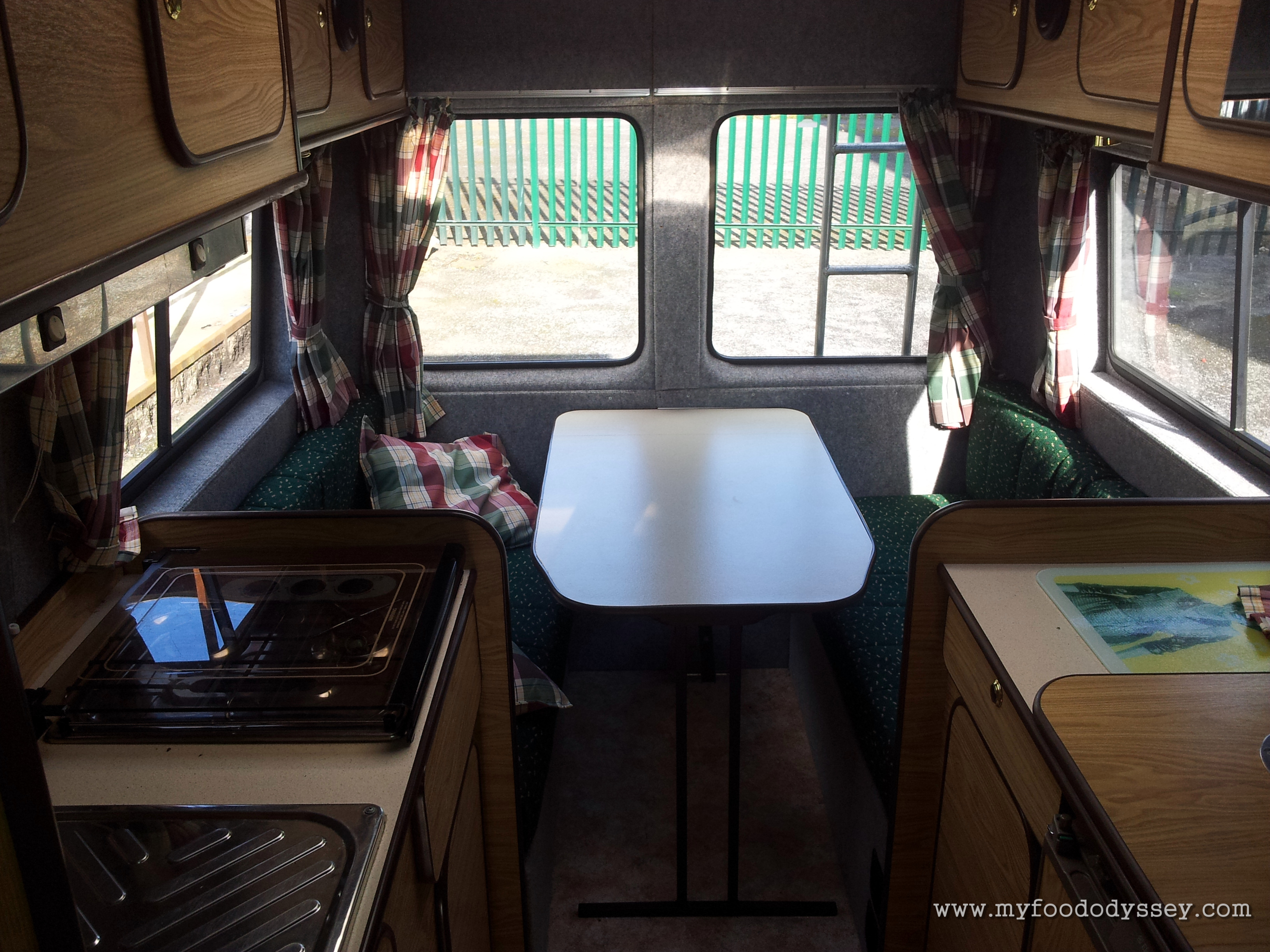 Our dining room, TV room, computer room and bedroom. Our dining room, TV room, office and bedroom. This picture doesn’t do justice to how bright it is down this end. Because of the windows all around and the sunroof above this area is really bright and airy. The bed is actually longer than it looks as there are cavities behind the sofa cushions. Arūnas can lie comfortably across it without touching his head or feet.