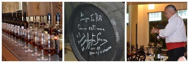 Sherry tasting at Tio Pepe. Note the signature on the barrel.