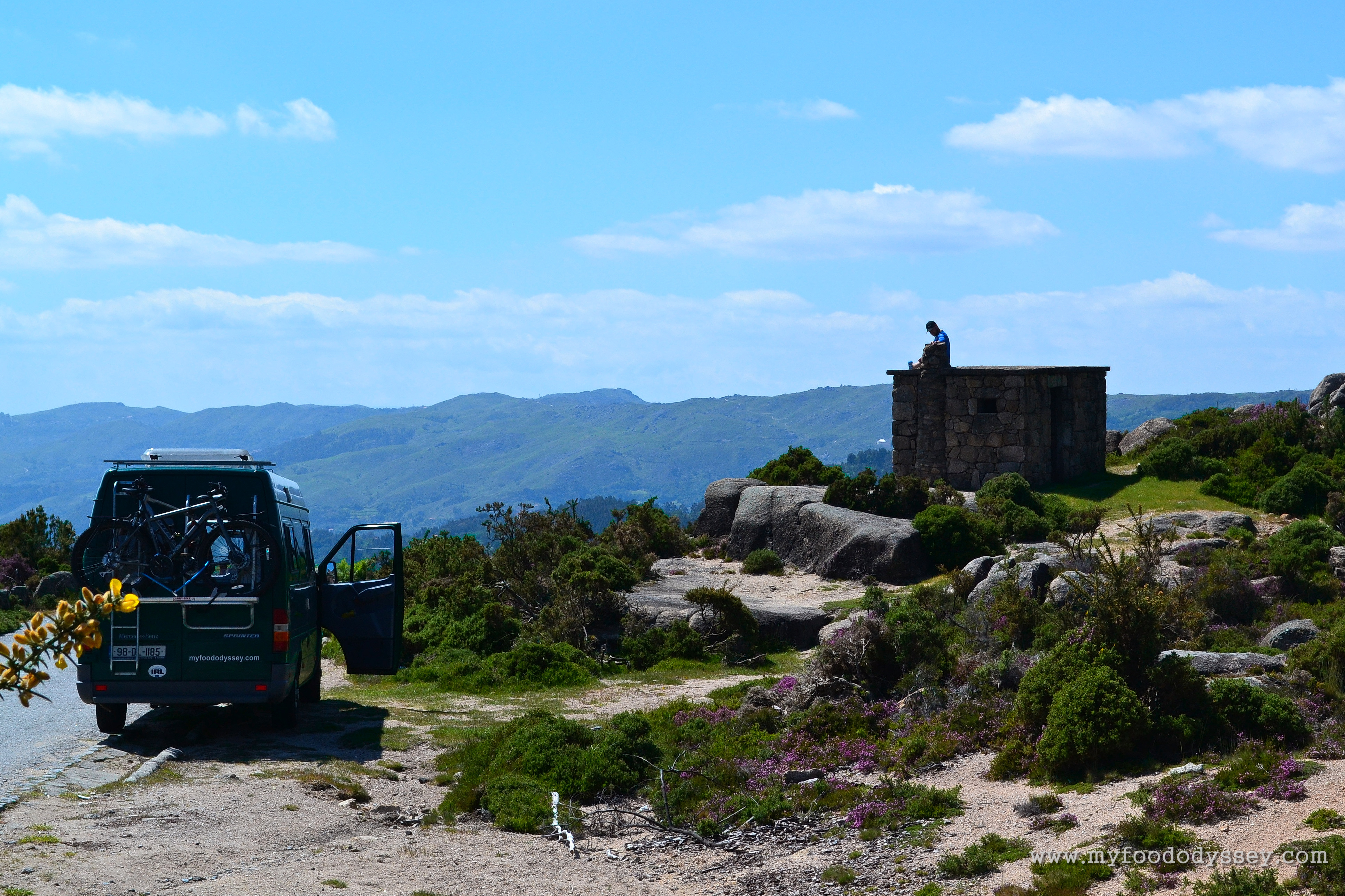 This is one of my favourite photos from our trip around Europe. Taken in Peneda-Gerês National Park in northern Portugal, it captures Arūnas taking a coffee break on top of a small stone shack. Close to the top of the mountain, the vistas surrounding us were superb. The photo completely captures the joy of camper van life – you can take your coffee break wherever you like!