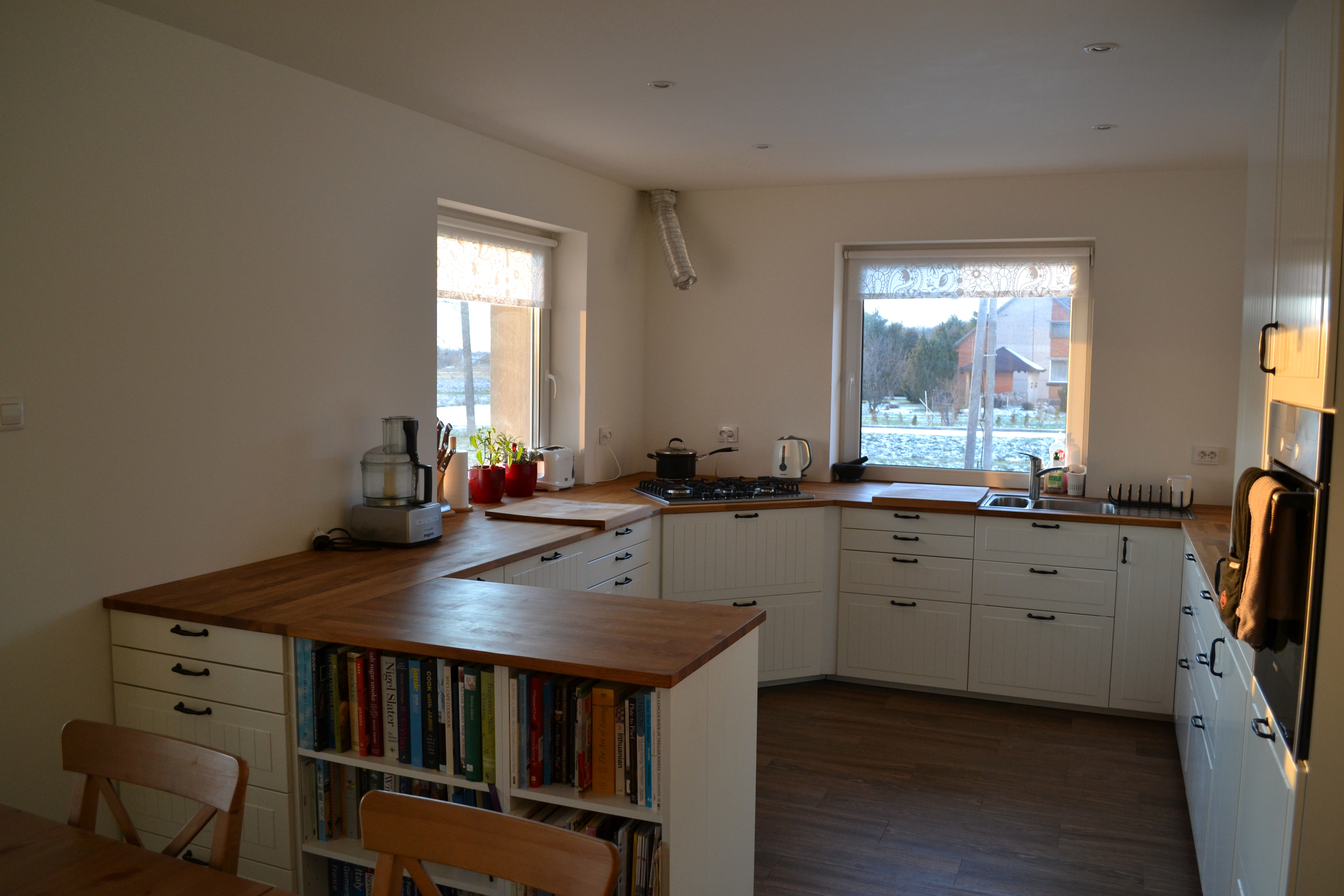 Featured IKEA items include METOD units with KROKTORP fronts, FAGLAVIK handles, HAMMARP worktop, LISELOTT blinds, ELDSLÅGA hob, BOHOLMEN 1.5 sink, STORNAS table and INGOLF chairs. We also have the SVÄVANDE ceiling mounted extractor which is in the process of being fitted over the hob.